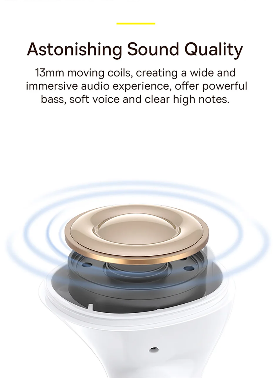 Qualidade de Som Surpreendente: As bobinas móveis de 13 mm, criando uma experiência de áudio ampla e imersiva, oferecem graves poderosos, voz suave e notas mais nítidas: