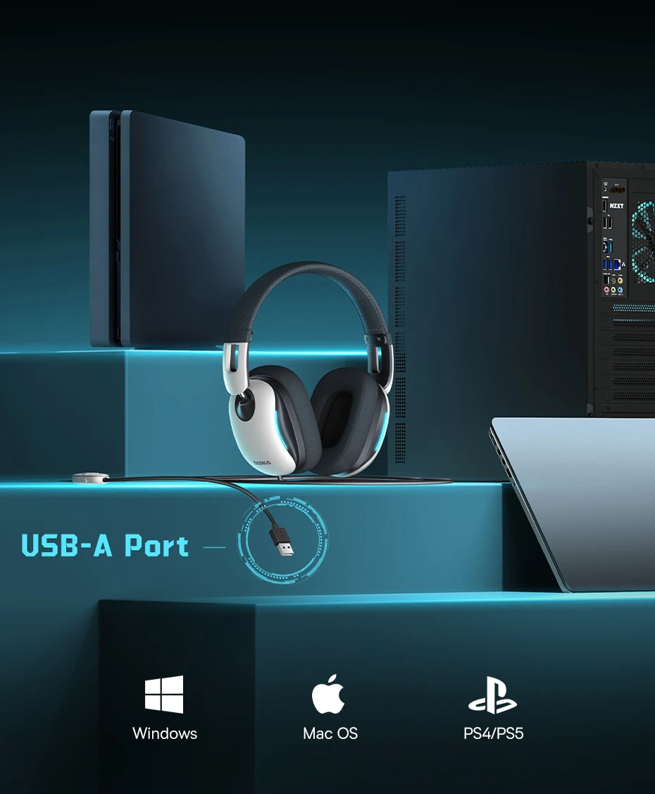 Conexão USB A Plug-and-Play: Compatível com Windows, MacOS e PS4/PS5, conecta facilmente via USB-A para jogos, músicas, chamadas e webinars sem complicações: