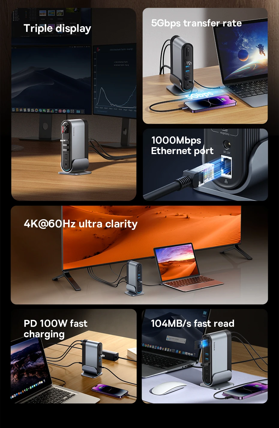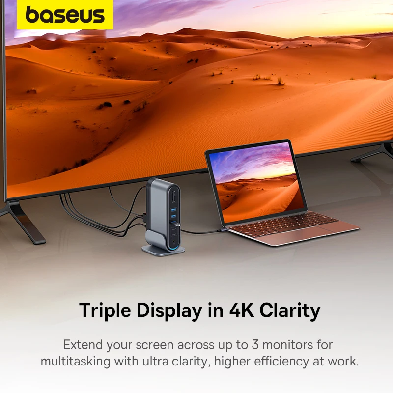 Escritório mais eficiente com três telas diferentes: Suporta o uso simultâneo de 3 portas 4K HD para exibição de telas diferentes: