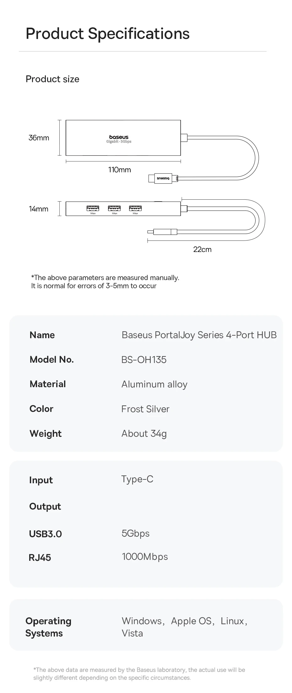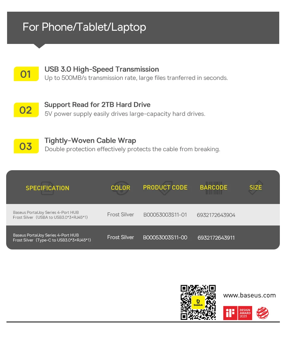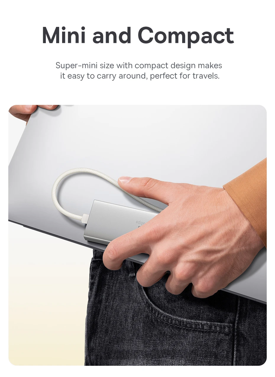 Hub USB C 4 em 1 PortalJoy Baseus: 4 Portas USB A extras: