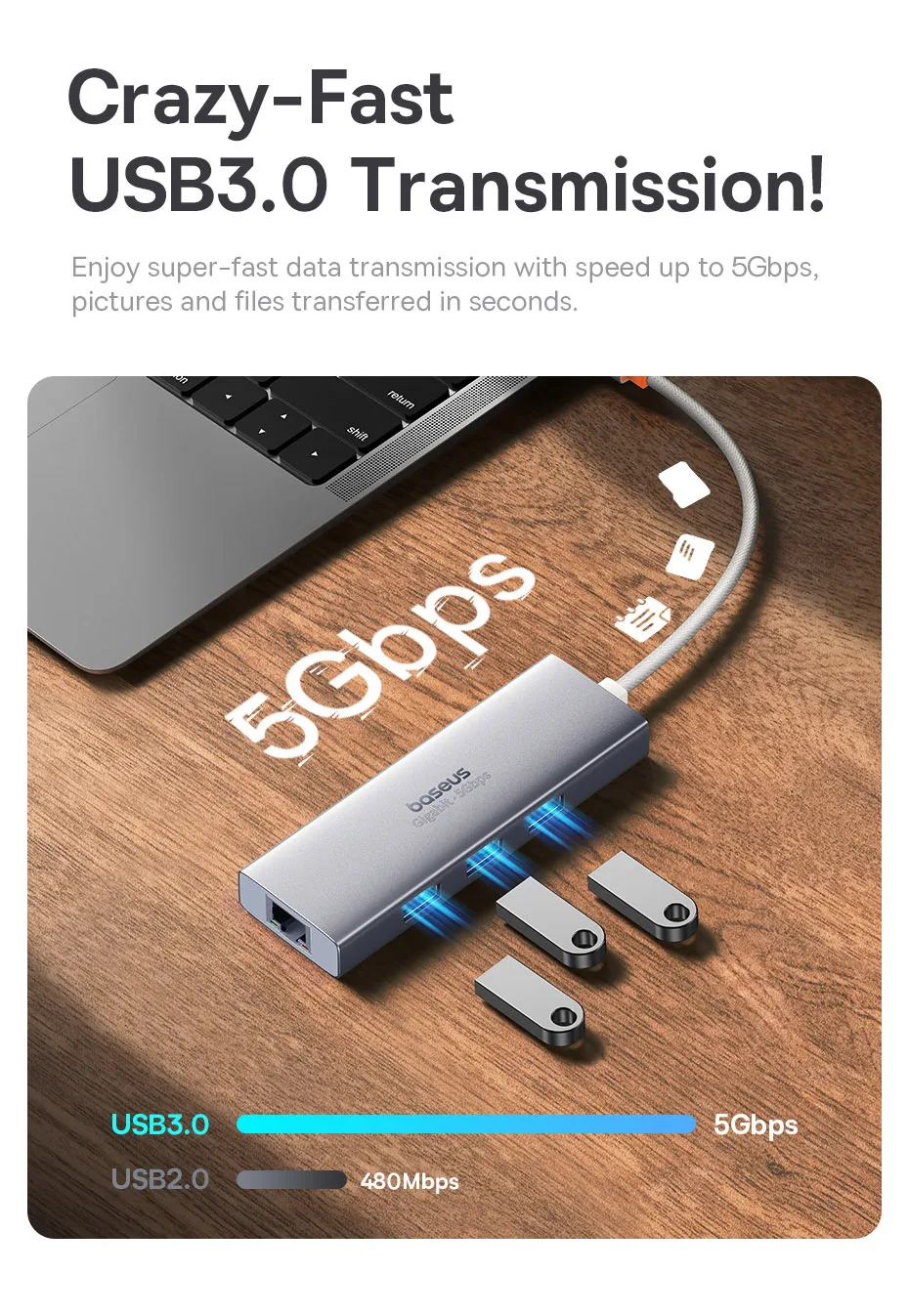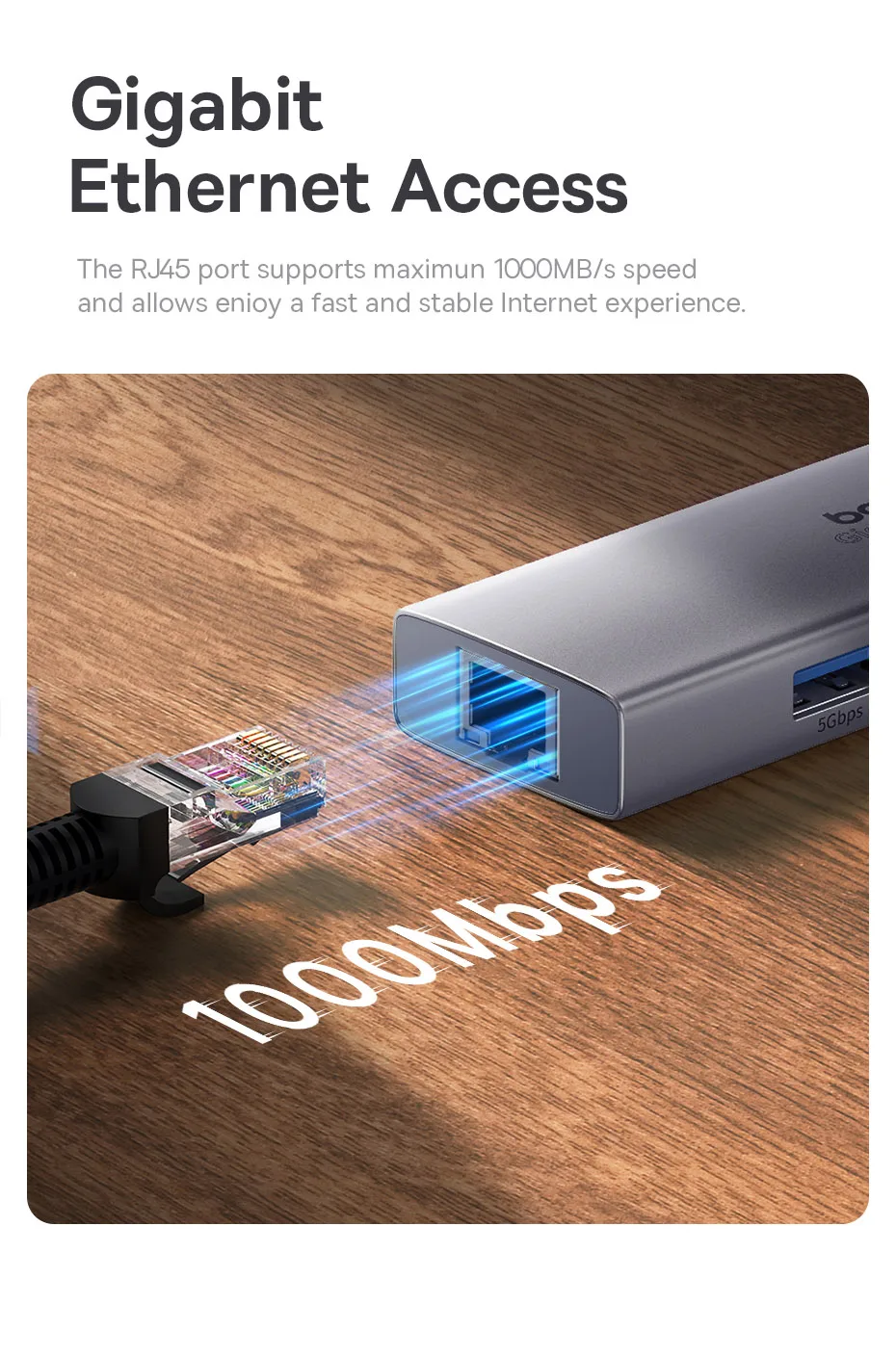 Porta Gigabit Ethernet: A entrada RJ45 do Hub permite que navegue com uma velocidade de até 1000MB/s: