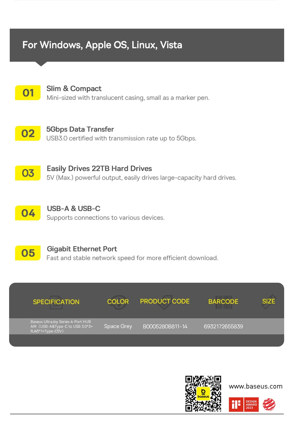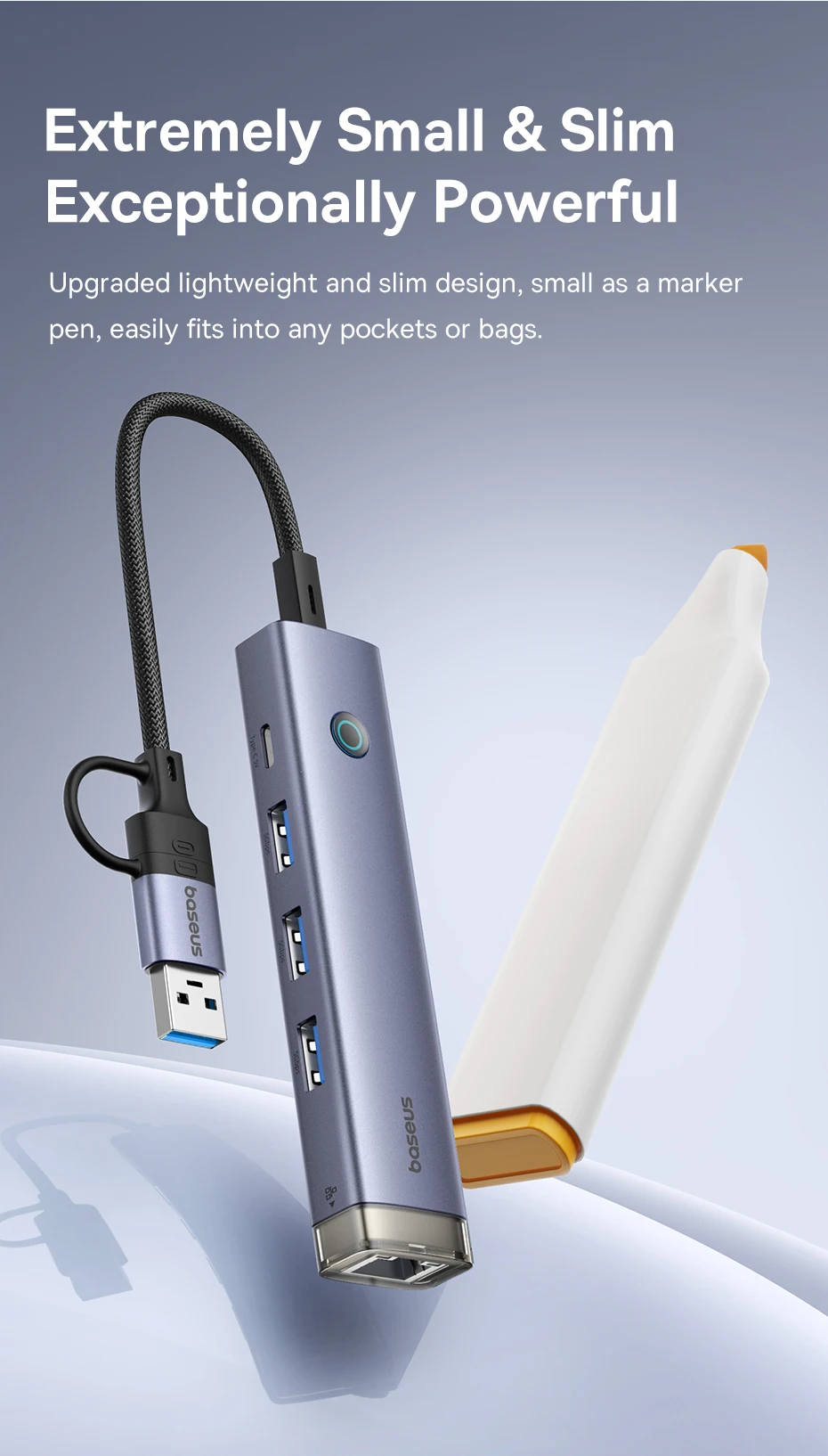 Hub USB C 4 em 1 UltraJoy Baseus: Pequeno e Poderoso: