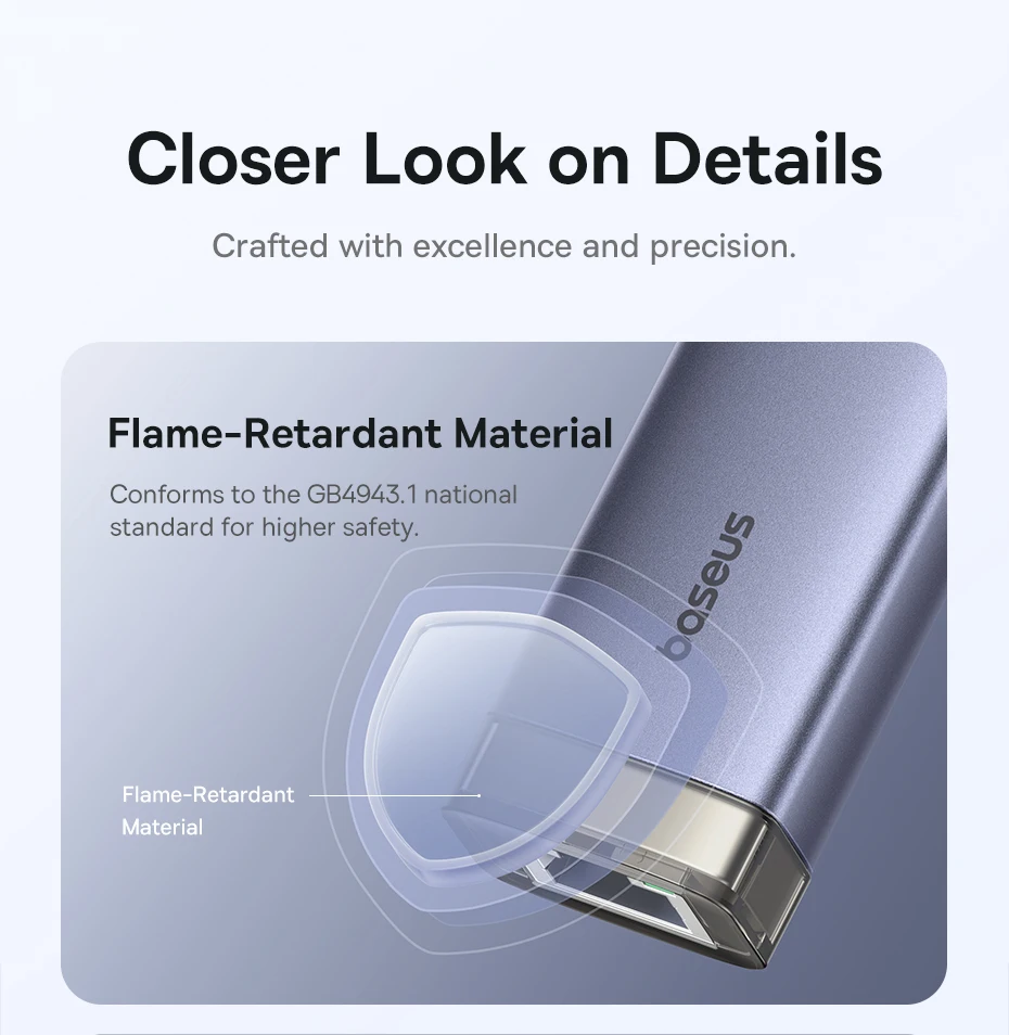 Detalhes que Fazem a Diferença: Construído com material retardante de chamas conforme a norma GB4943.1, oferecendo mais segurança e durabilidade no uso diário: