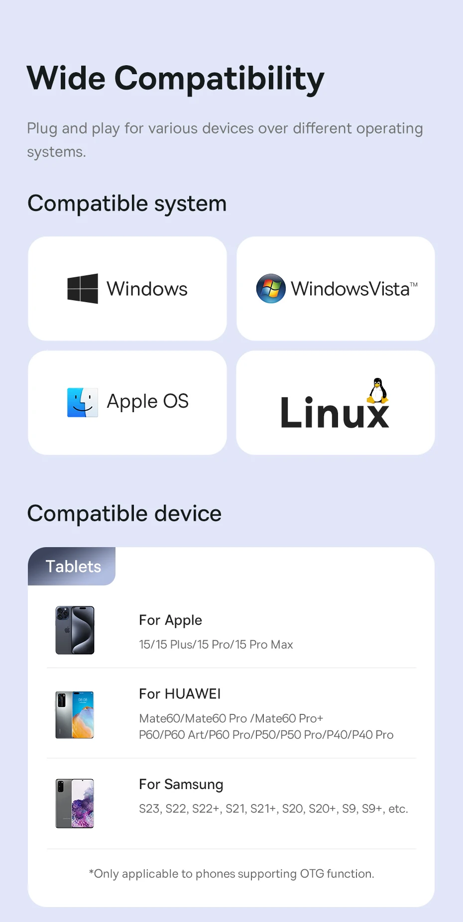 Compatibilidade Ampla e Conexão Instantânea: Compatível com Windows, macOS, Linux e Android OTG. Funciona com tablets, notebooks e smartphones de marcas como Apple, Samsung e Huawei: