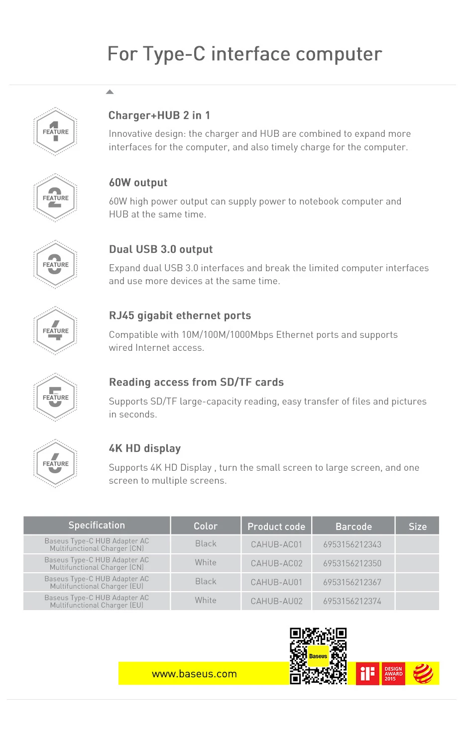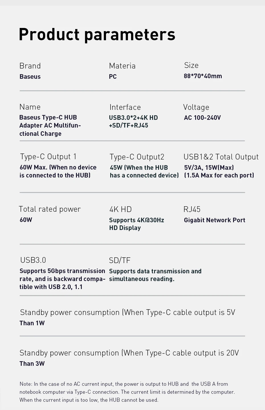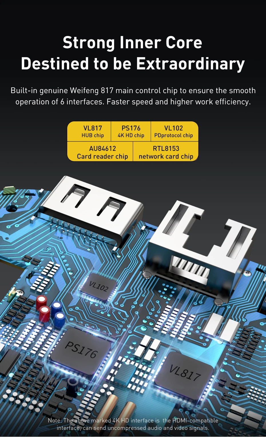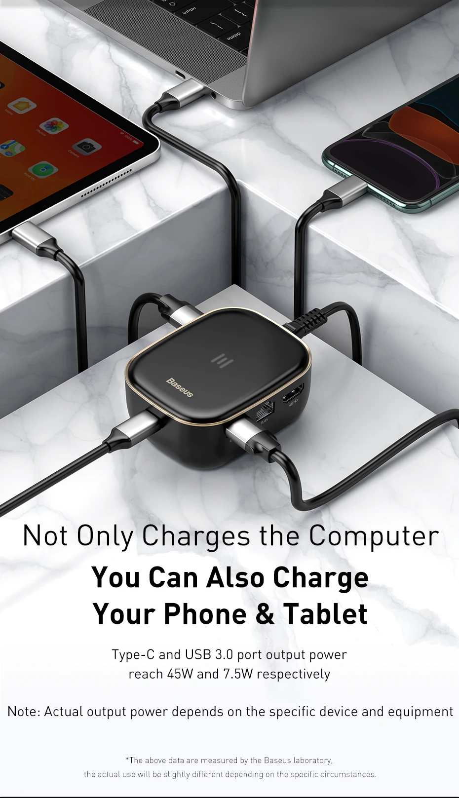 Hub USB C Adaptador Multifuncional 6 em 1 Carregador AC