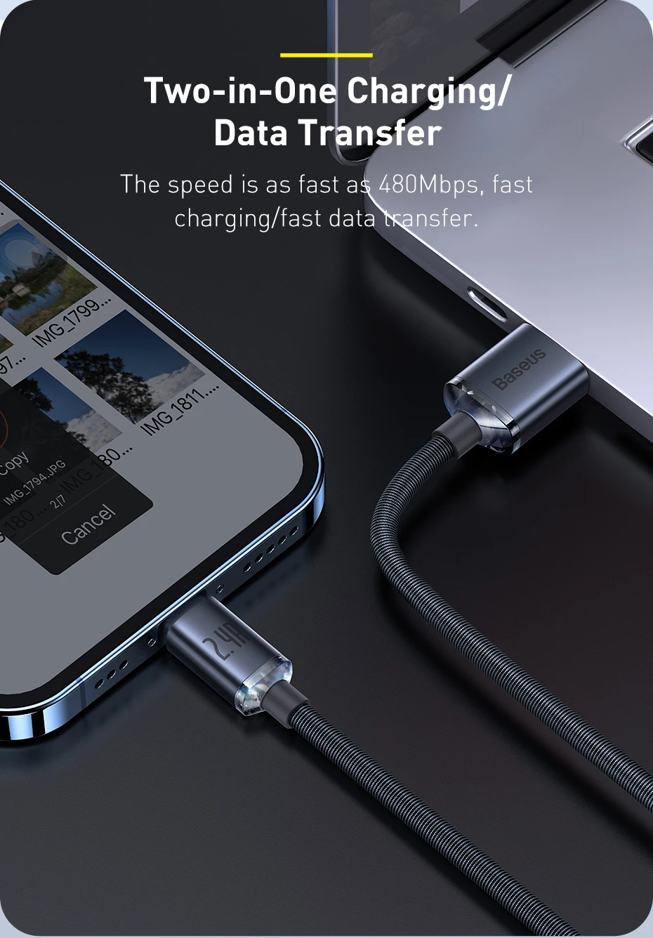 A velocidade é tão rápida quanto 480mbps, carregamento rápido/transferência de dados rápida