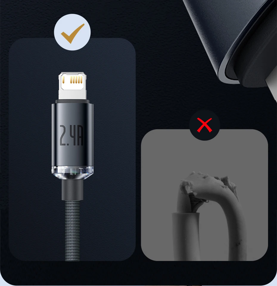 Cabo de dados de carregamento rápido 2.4a da série do brilho de cristal