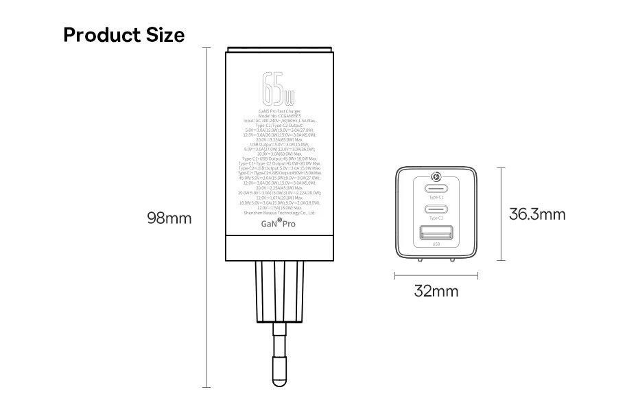 Carregador 65W GaN5 Pro 3 Portas Baseus: Inovação e Tecnologia para um carregamento eficiente: