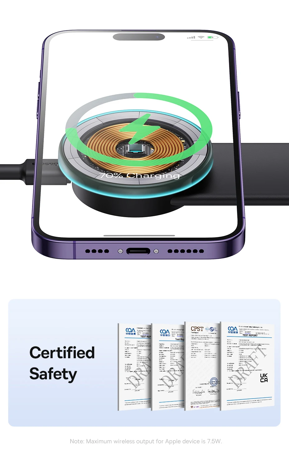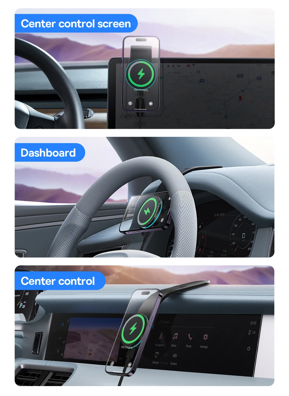 Suporte com Carregamento Magnético 15W: Carregue seu aparelho enquanto utiliza o suporte: