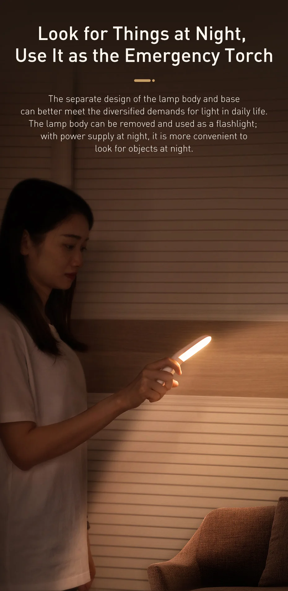 Utilize como lâmpada de emergência: A Lâmpada de LED Baseus pode ser usado como lanterna portátil: