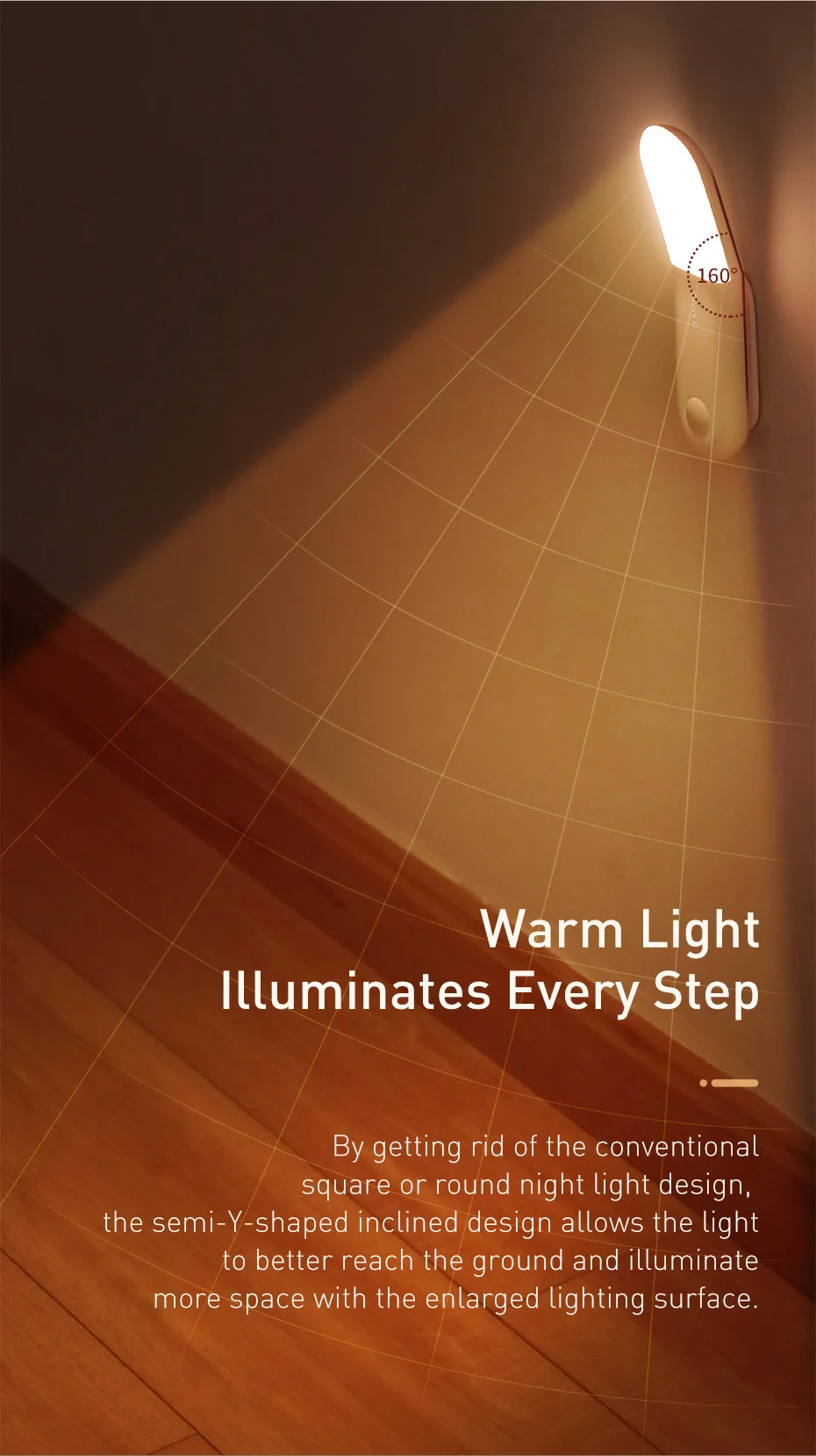160° de iluminação: 160° graus de ampla área de iluminação, tornando o chão mais visível: