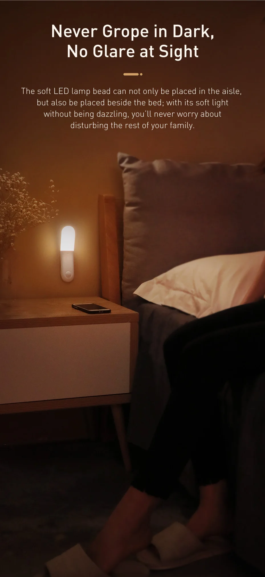 Levante de noite com luz suave: A luz acende quando você levanta de noite sem incomodar a família com a iluminação: