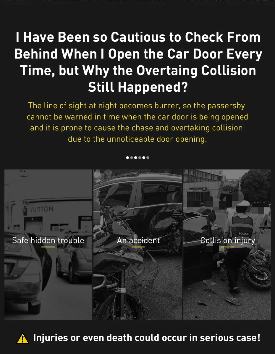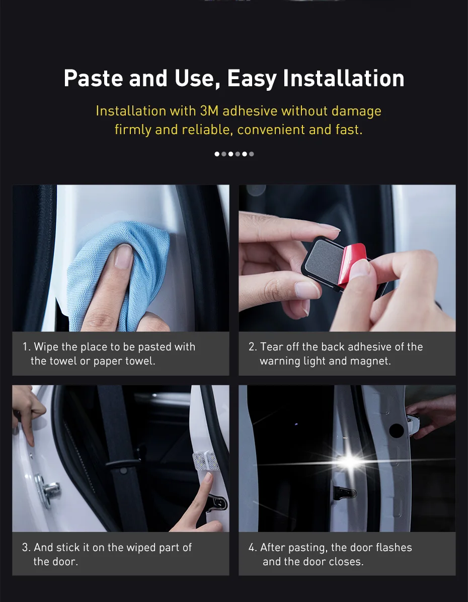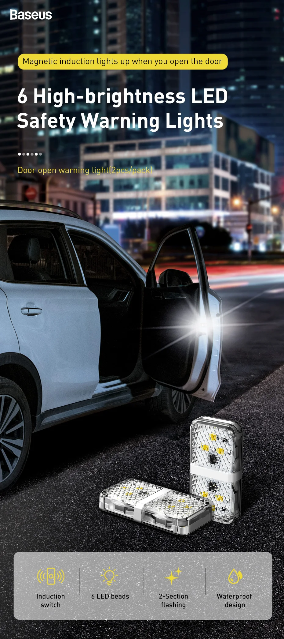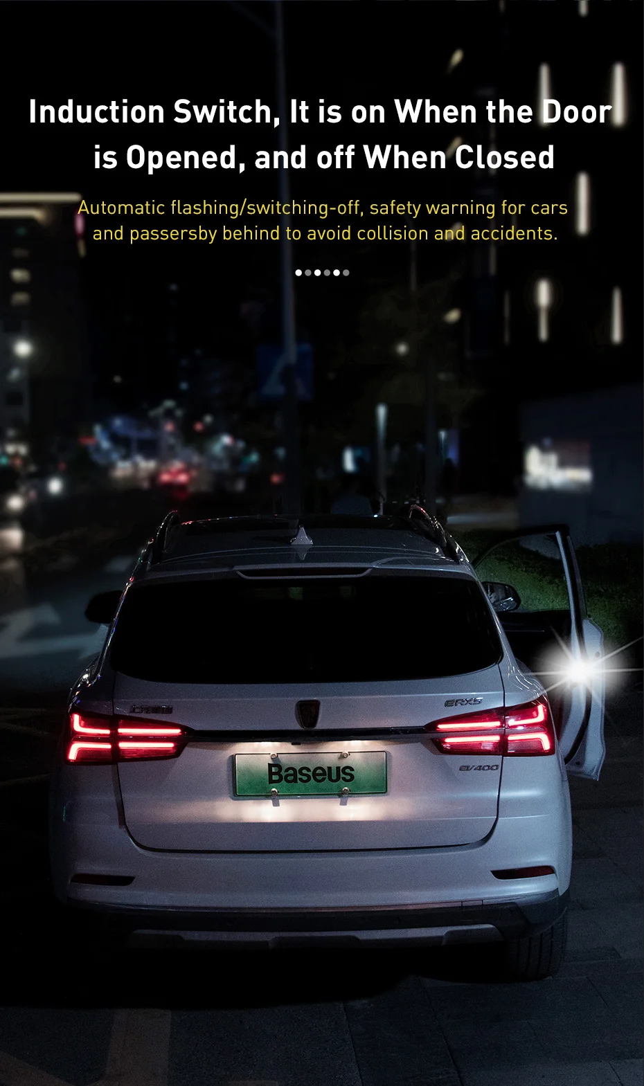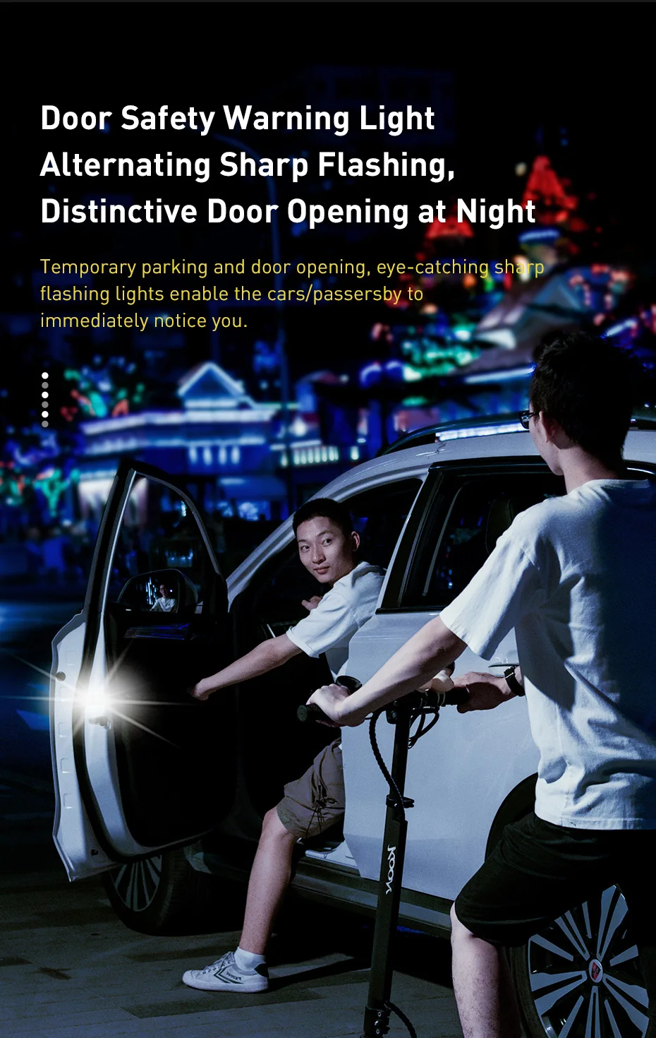 Segurança: A luz de segurança Baseus te ajudará a evitar acidentes ao abrir as portas do carro, alertando motoristas e pedestres que estiverem vindo em sua direção: