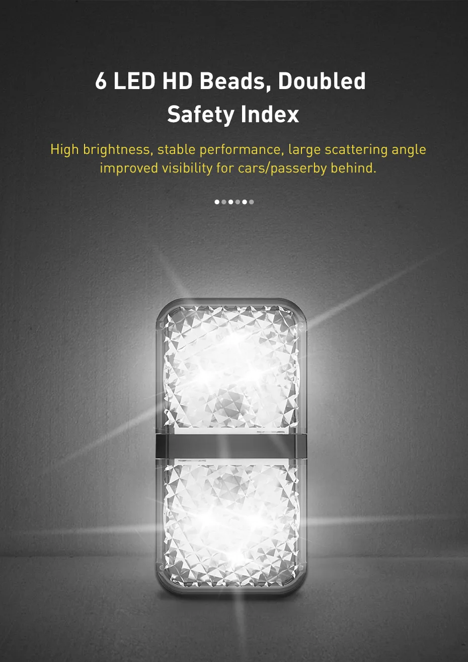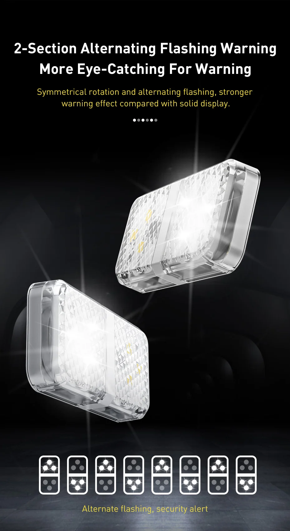 Avisos alternados: A luz Baseus alterna avisos em duas seções simétricas, chamando mais a atenção e sendo mais fácil de ser vista de diversas direções:
