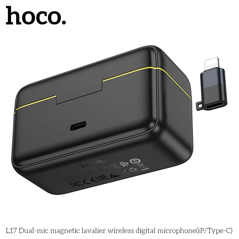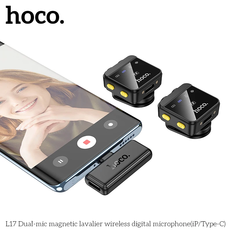 Microfone de Lapela HOCO L17 Sem Fio Magnético – Duplo Microfone