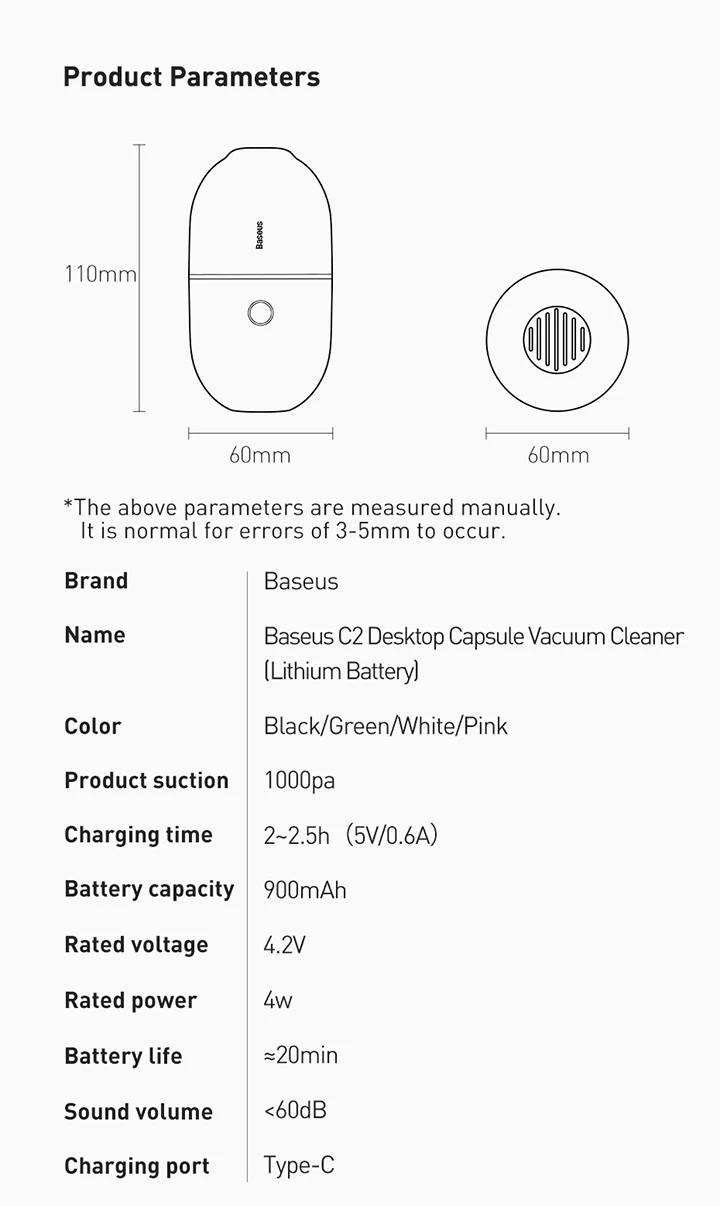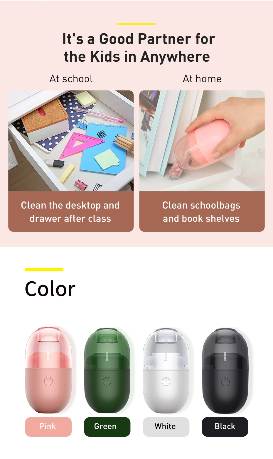 Perfeito para limpeza em qualquer lugar: Mini Aspirador de pó 1000Pa Baseus: