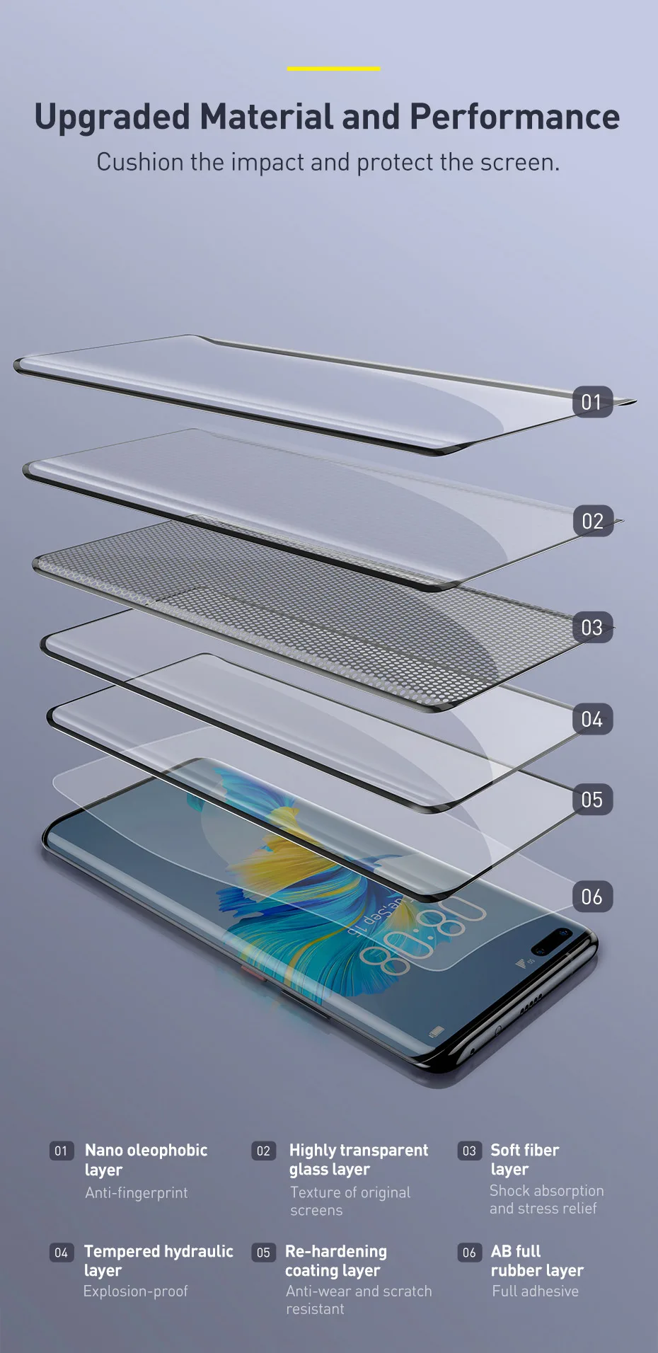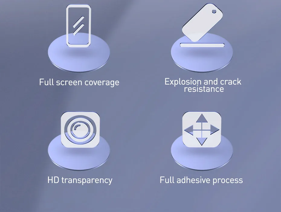 6. Superfície curvada, Tela cheia, Elevador Anti-Borda: O processo de dobra a quente oferece um filme de superfície curva dupla para encaixar perfeitamente nas bordas contra a elevação da borda.