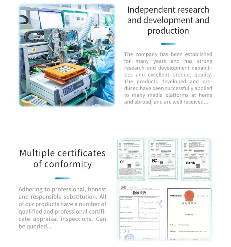 Marca Profissional, Confiável e Reconhecida: Com forte capacidade de P&D, produtos certificados e suporte pós-venda completo, a UNISHEEN é amplamente utilizada em diversas plataformas e setores: