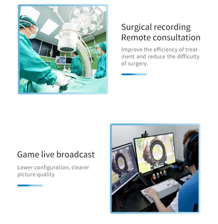 Uso Versátil em Diversas Áreas: Ideal para aplicações médicas, transmissões ao vivo, educação, segurança, conferências, jogos e gravações. Perfeito para cirurgias remotas e transmissões de games com qualidade de imagem superior: