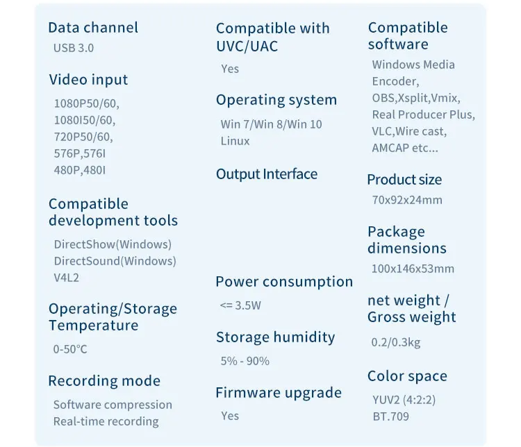 Compatível com Diversos Softwares de Captura: Funciona com plataformas populares como OBS Studio, YouTube, Twitch, Facebook, vMix, Wirecast e outras. Suporte às interfaces DirectShow e DirectSound, permitindo captura direta por software de terceiros, sem necessidade de instalação adicional: