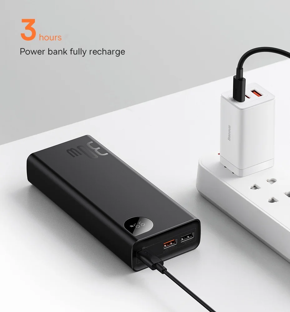 Alta velocidade de carregamento: O Power Bank 30W carrega a 100% em somente 3 horas, estando sempre pronto para as suas necessidades: