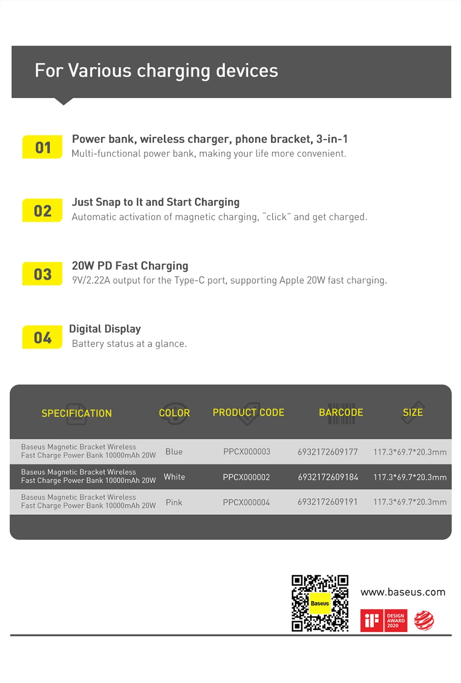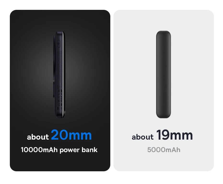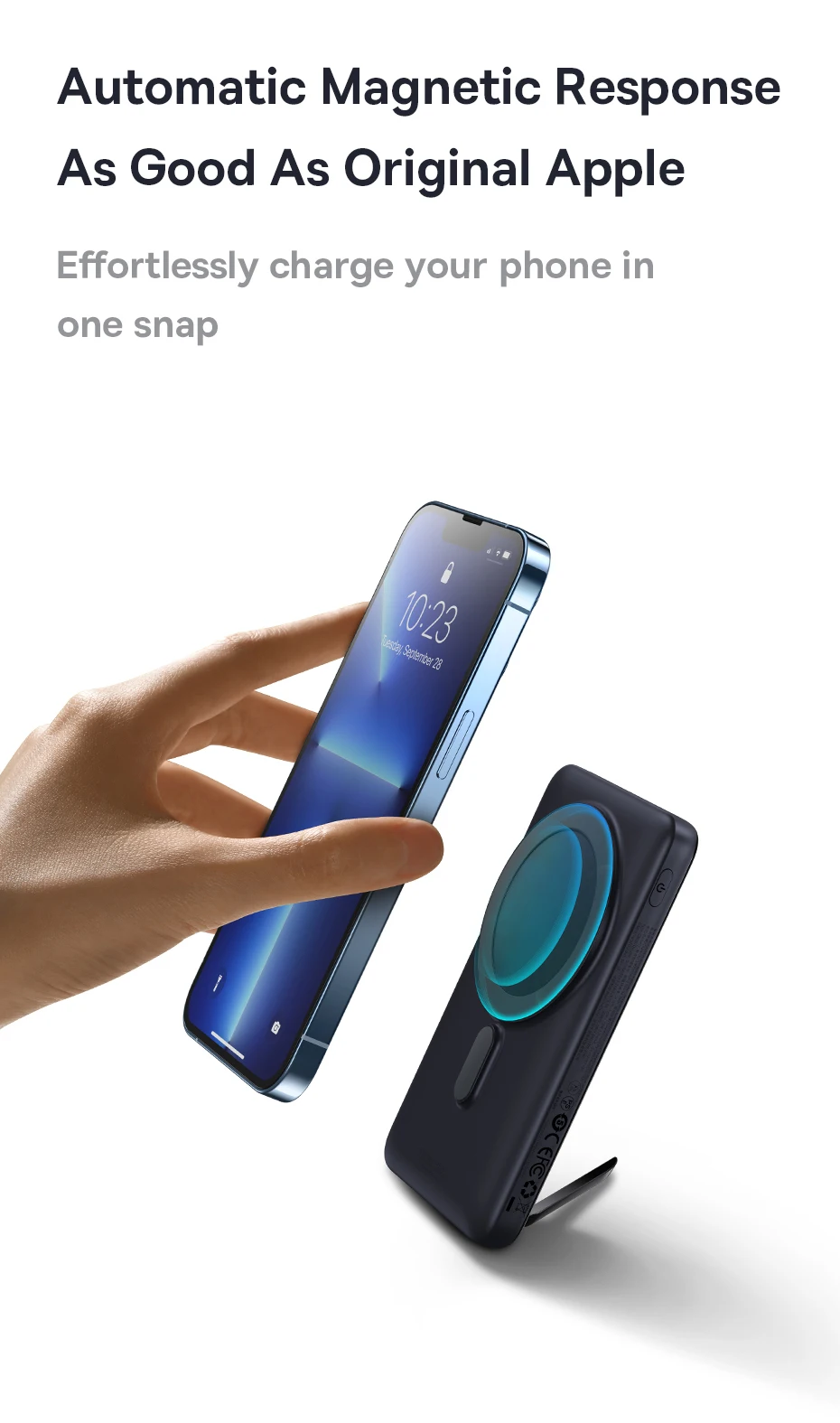 Use o carregamento sem fio para carregar seu iPhone (15W), e carregamento cabeado para carregar seu Power Bank (20W):