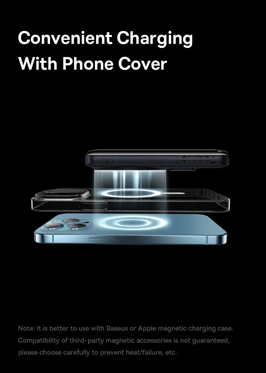 Carregue o seu iPhone com a Capa: O Power Bank Baseus é compatível com o seu iPhone mesmo com a capa protetora: