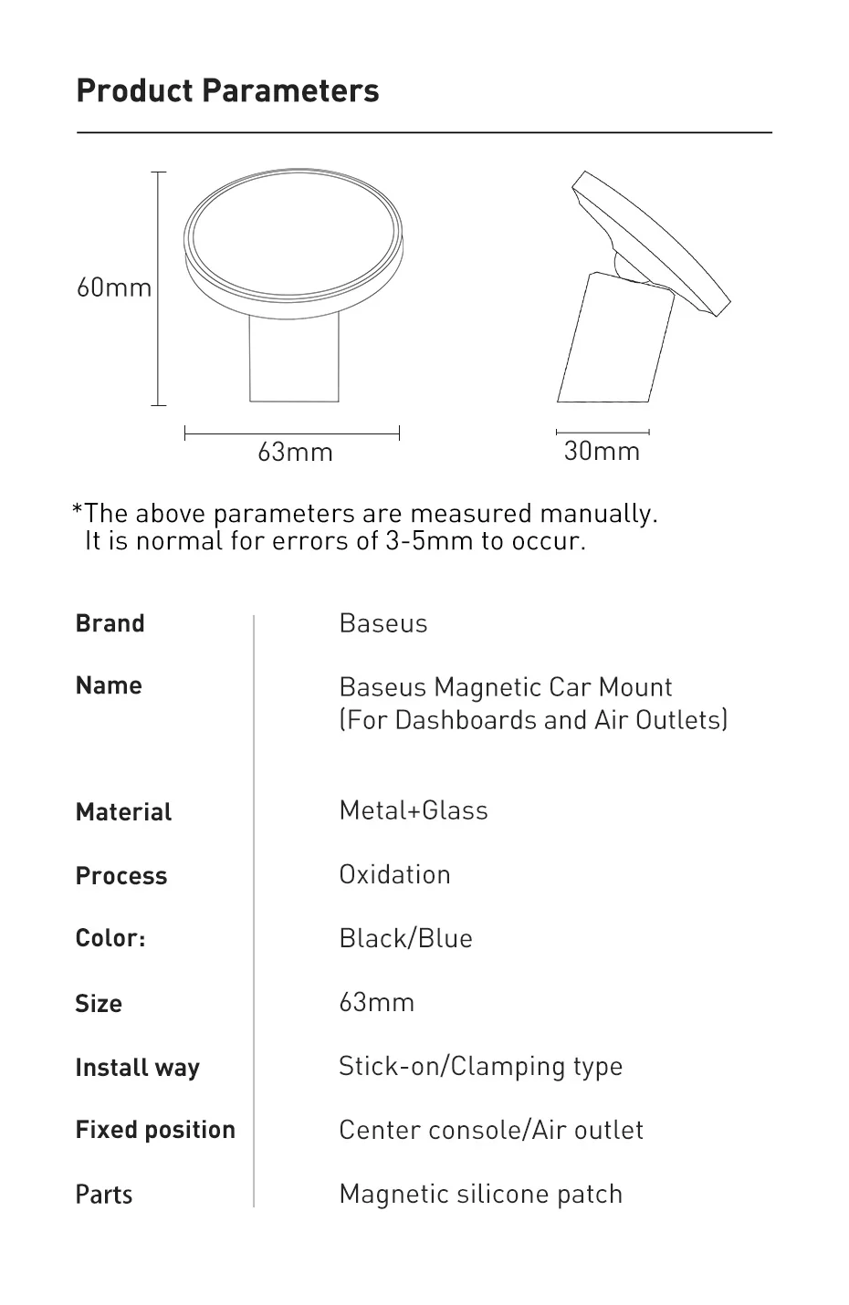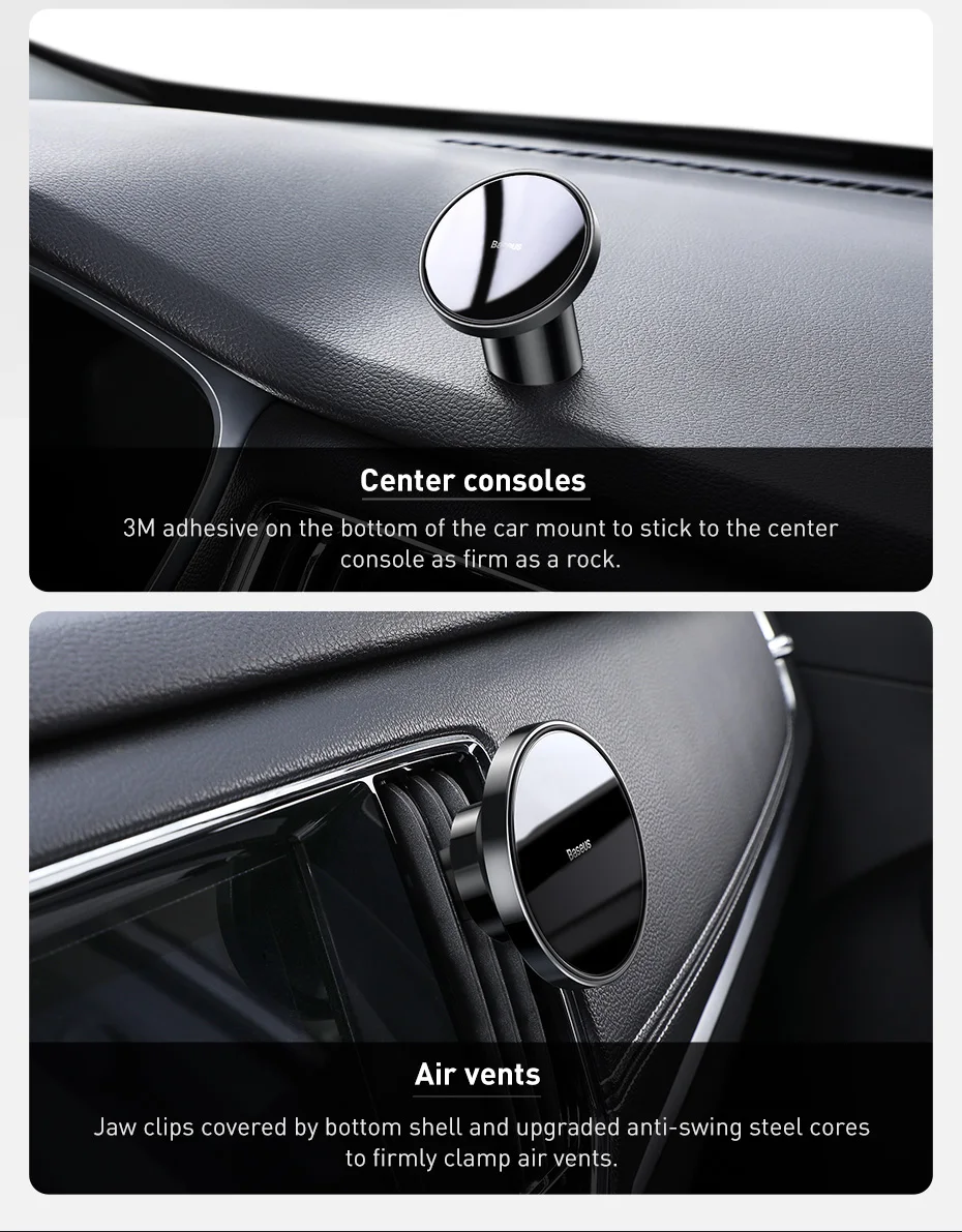 Suporte Magnético 2 em 1 para Saída de Ar ou Painel Baseus: Fácil e Prático de Usar:
