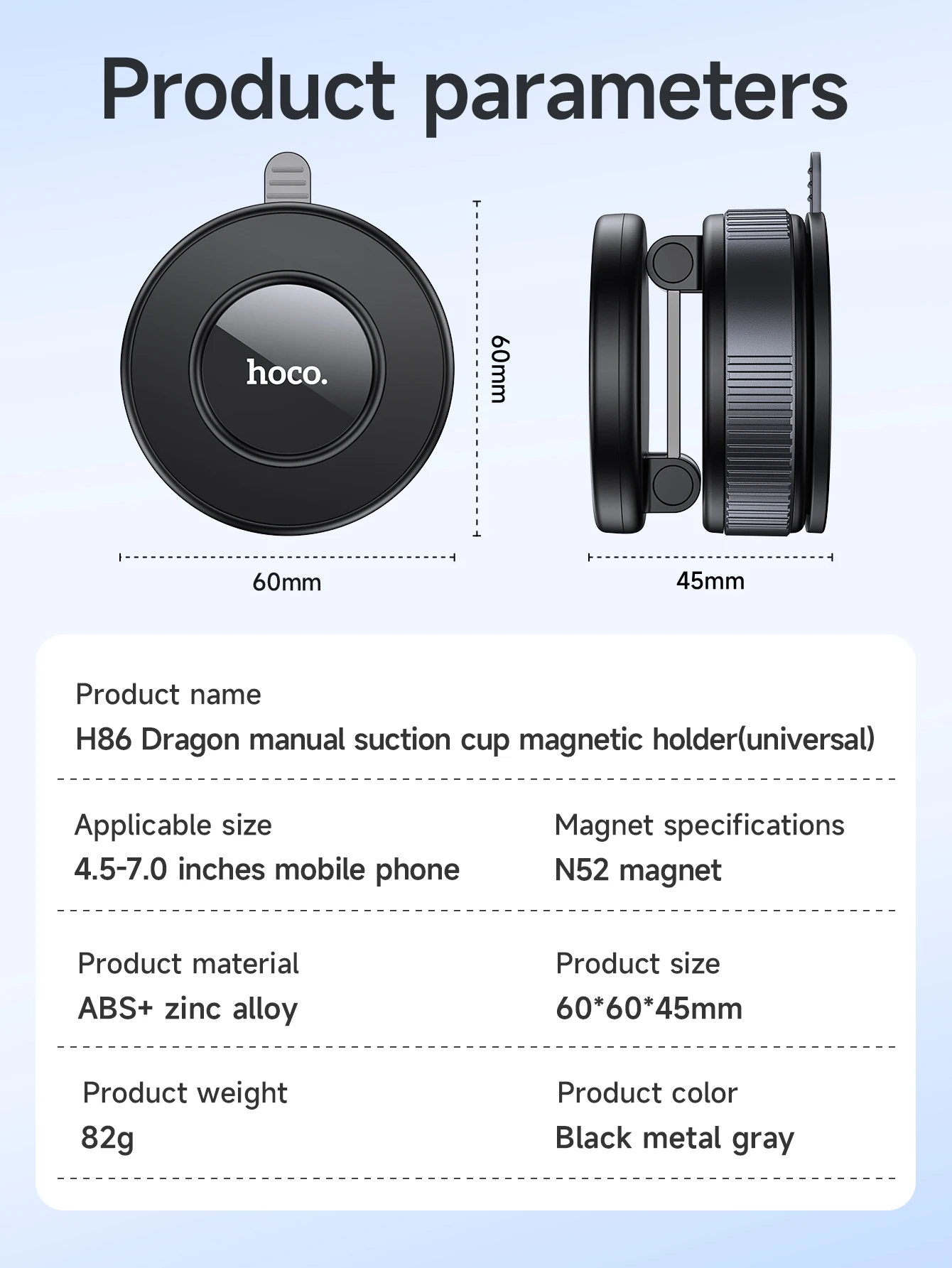 Suporte Magnético veicular HOCO H86 com Fixação a Vácuo (360°)