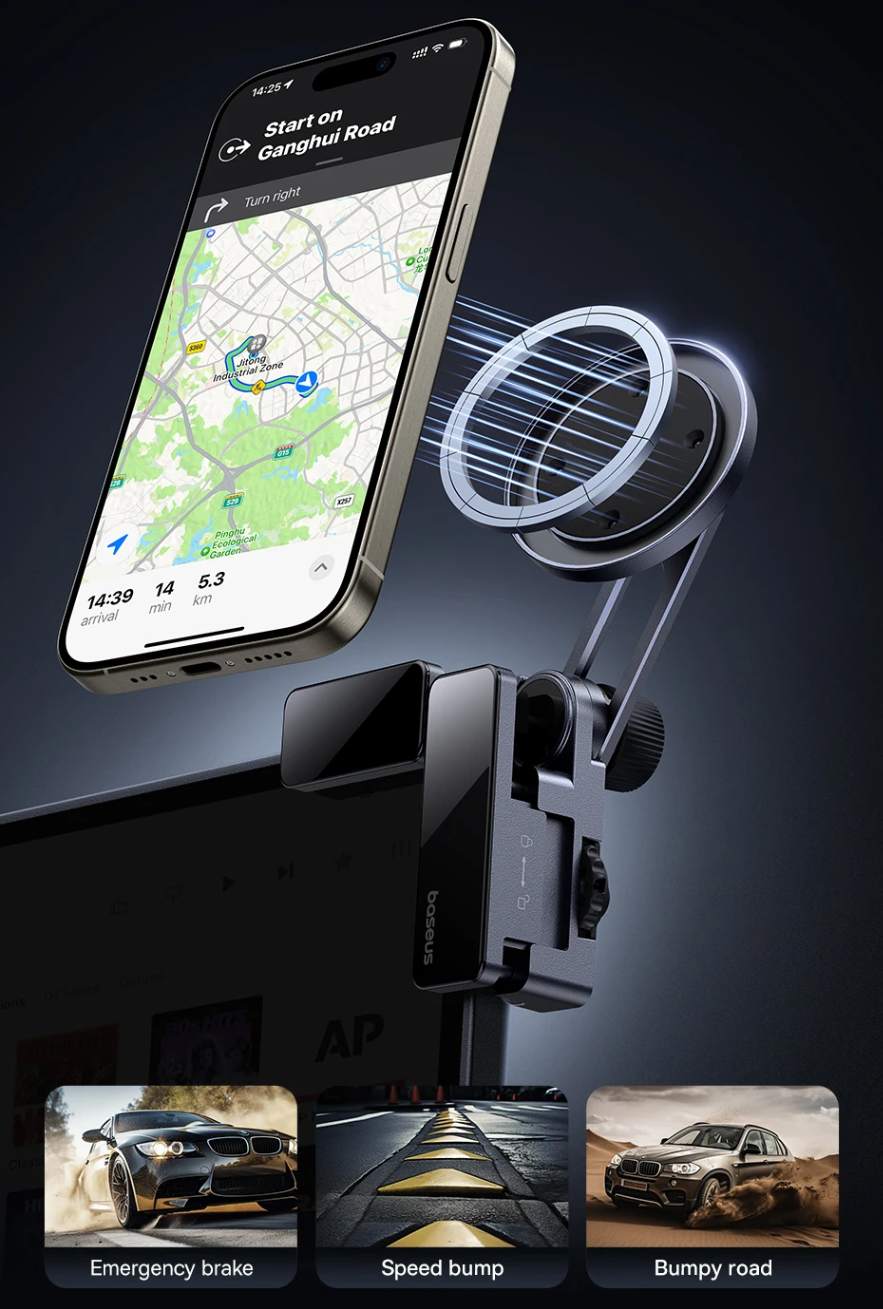 Fixação Forte com 17N de Ímãs: Possui 17N de força magnética para prender o celular com segurança, garantindo estabilidade mesmo em estradas irregulares: