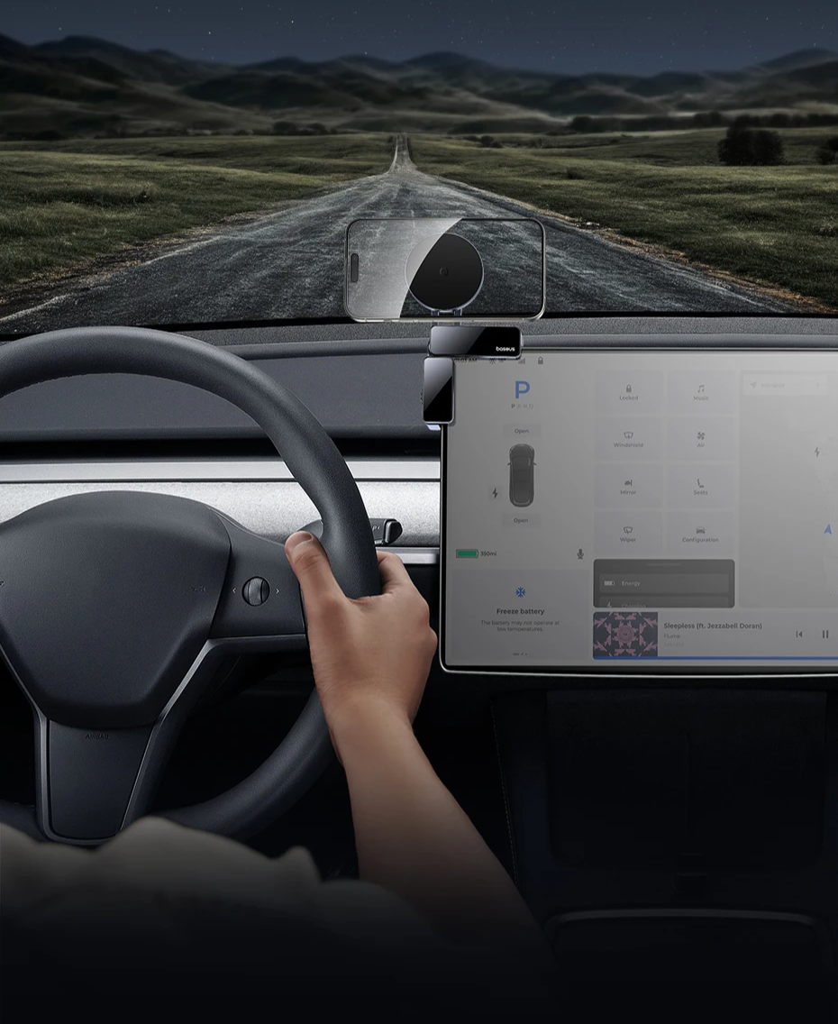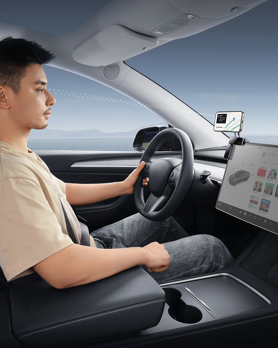 Visual Ampla e Segura: Design suspenso que mantém a tela visível sem bloquear sua visão ou o multimídia, garantindo direção segura e estética clean no interior do carro: