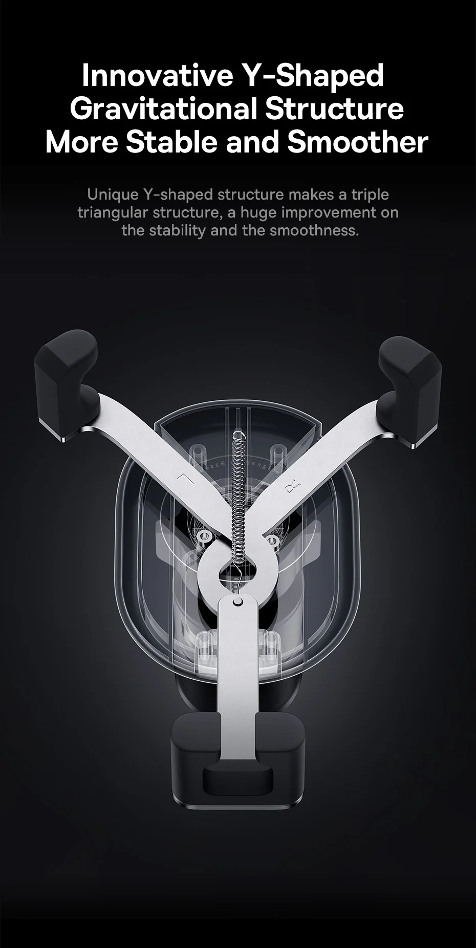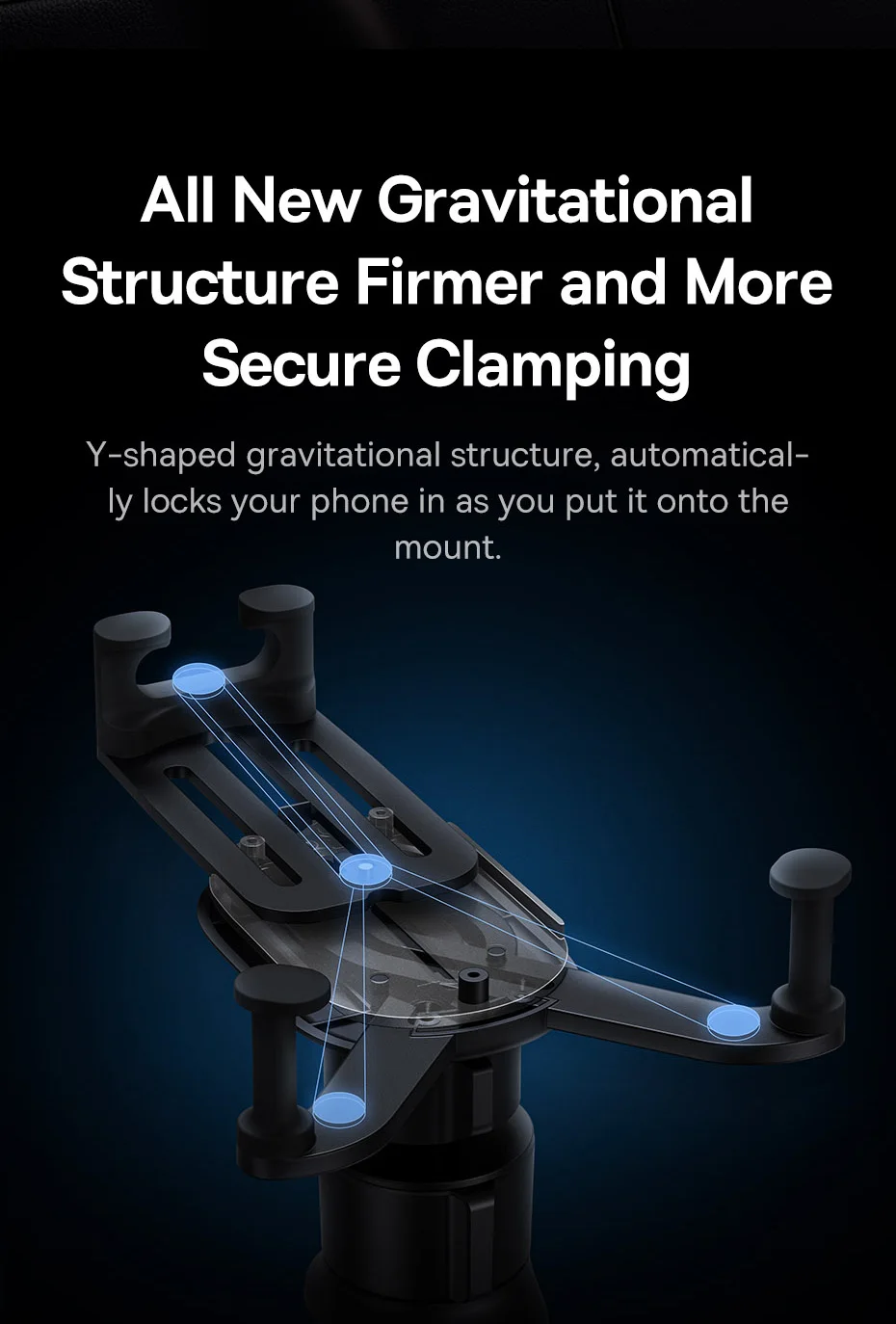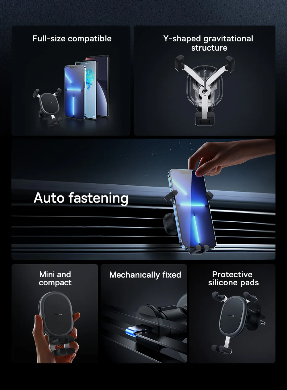 Nova estrutura com fixação mais firme e segura: A estrutura gravitacional do suporte em forma de Y, bloqueia automaticamente o telefone quando você o coloca no suporte: