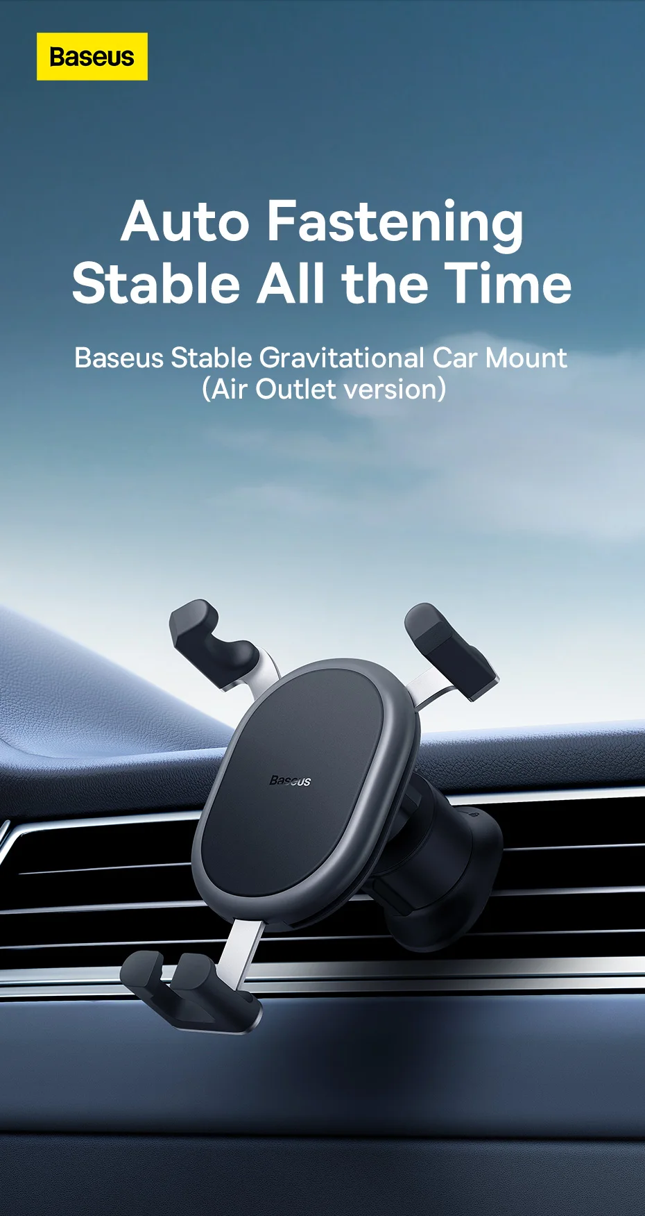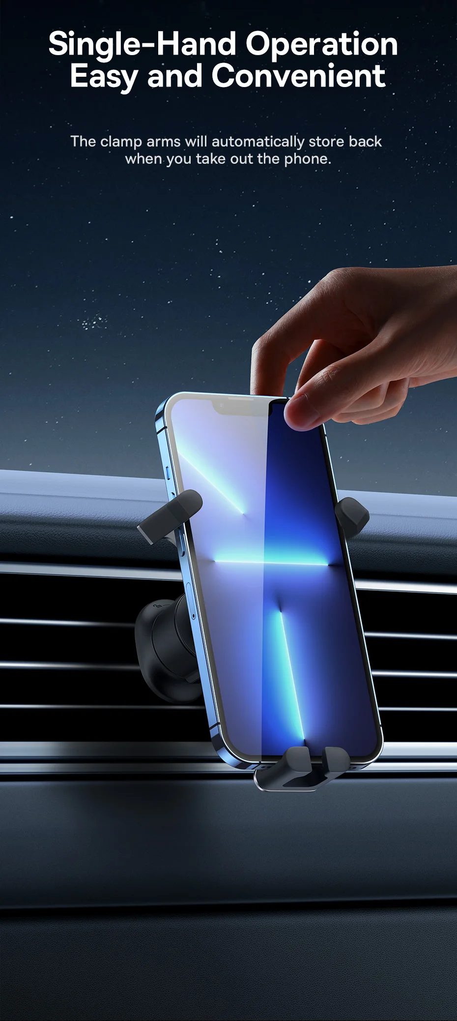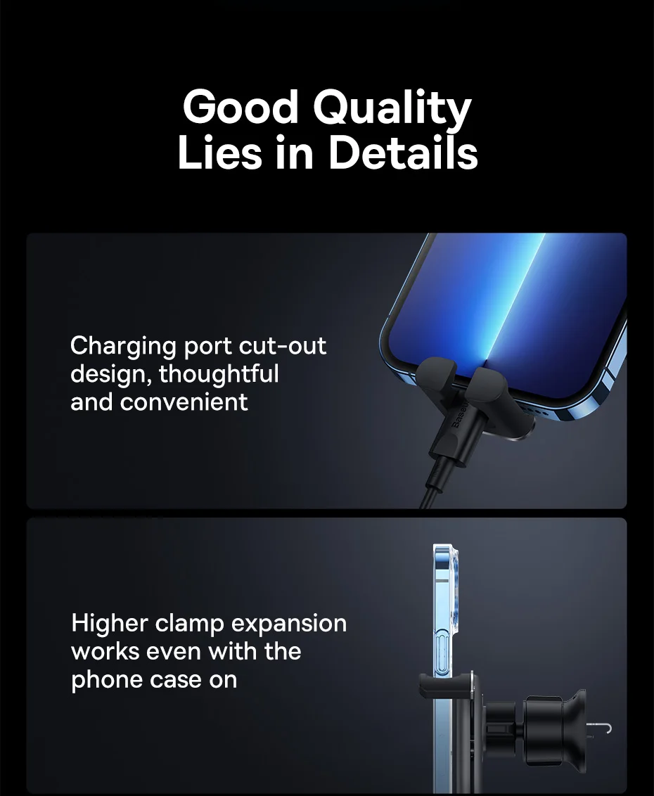 Nova estrutura com fixação mais firme e segura: A estrutura gravitacional do suporte em forma de Y, bloqueia automaticamente o telefone quando você o coloca no suporte: