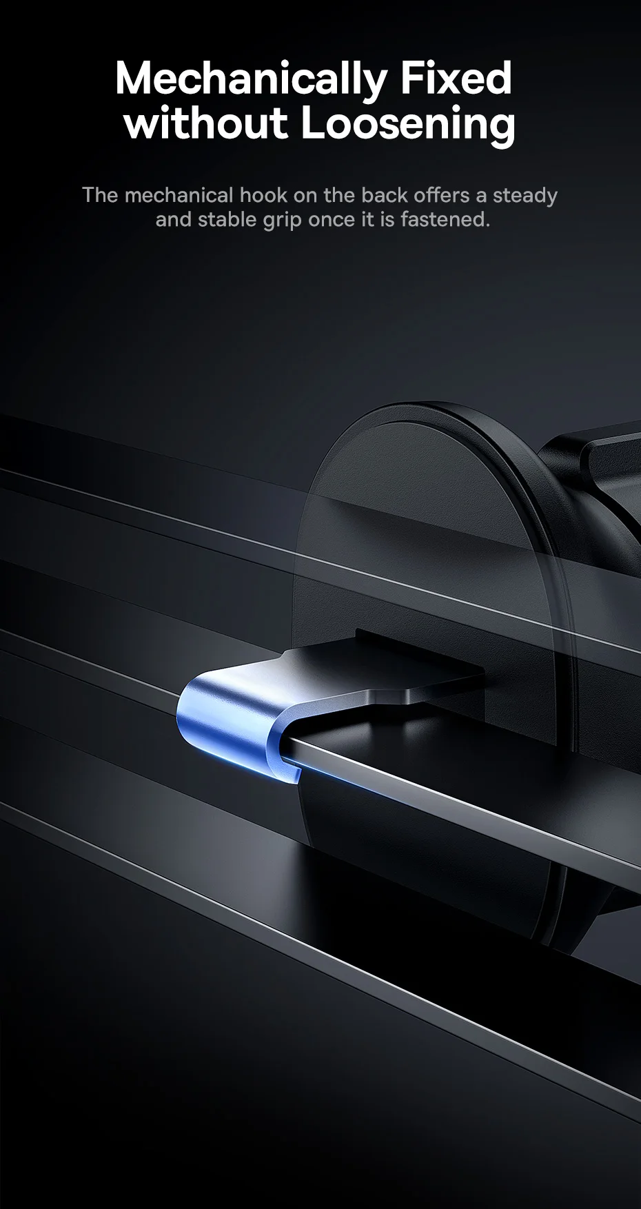 O gancho mecânico na parte traseira oferece um aperto constante e estável uma vez que é prendido.