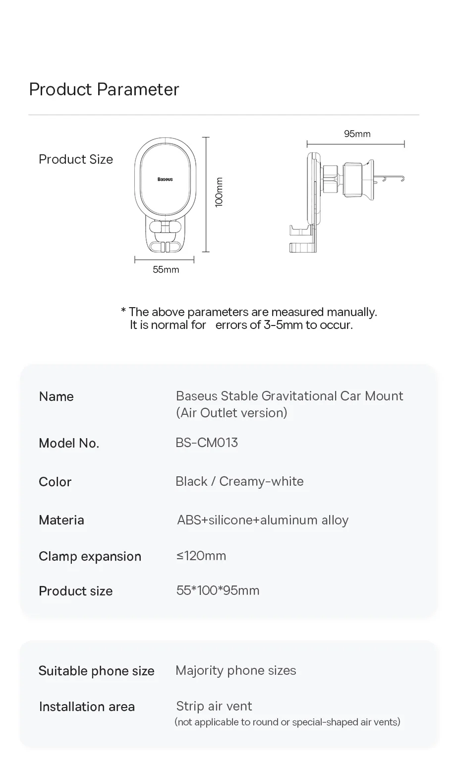 Nota: adequado para a maioria dos telefones (wiidth≤ 120mm)