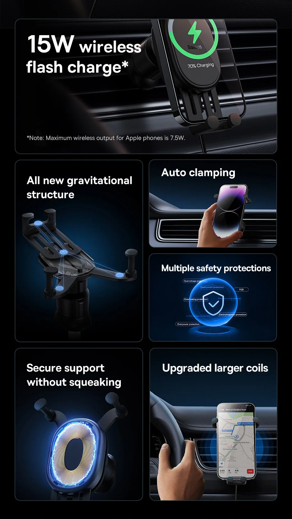 Montagem gravitacional estável do carro pro (suporte sem fio do carregador)