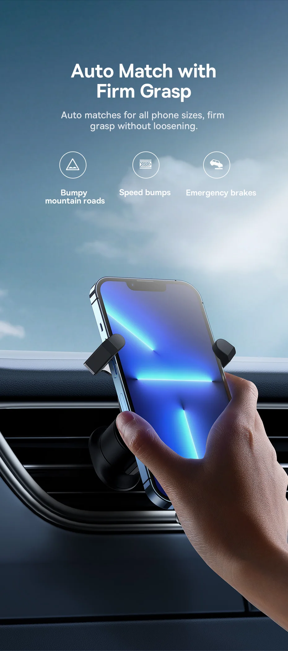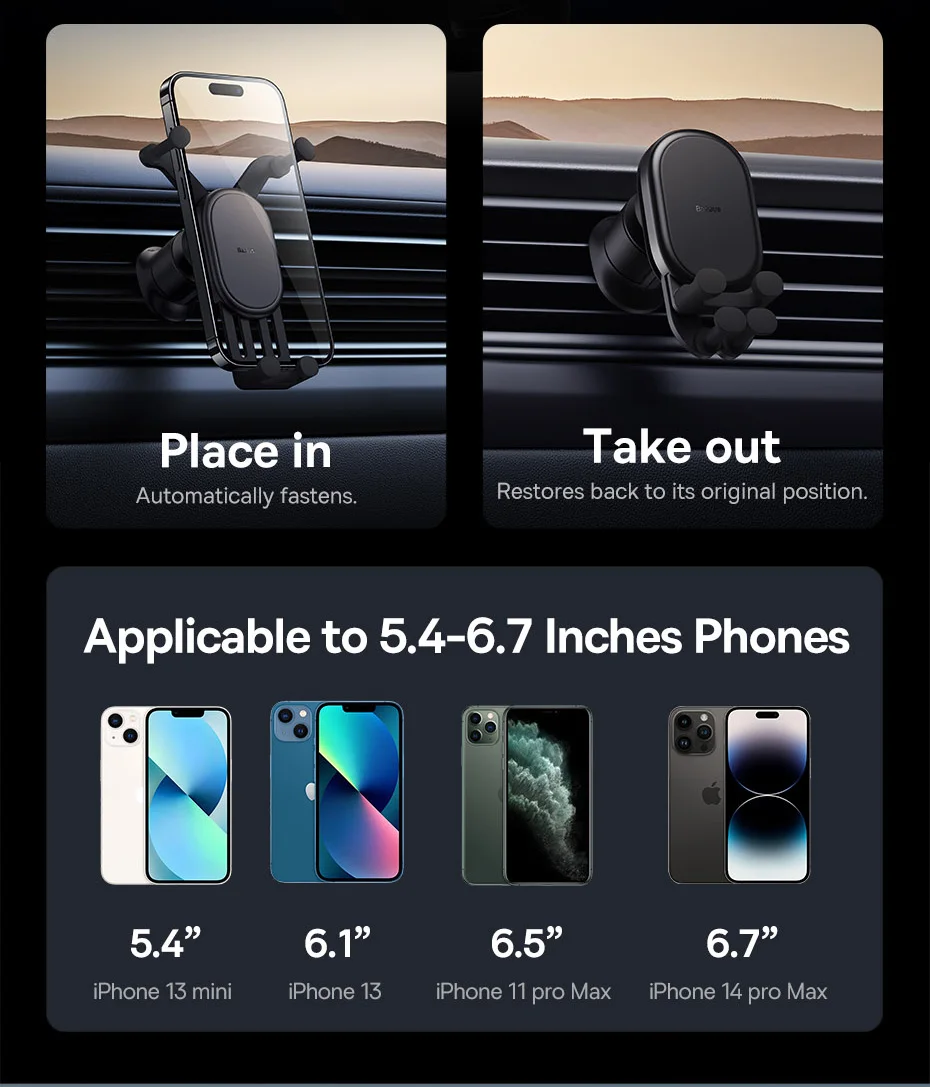 Auto jogos para todos os tamanhos de telefone, firme aperto withou afrouxamento.