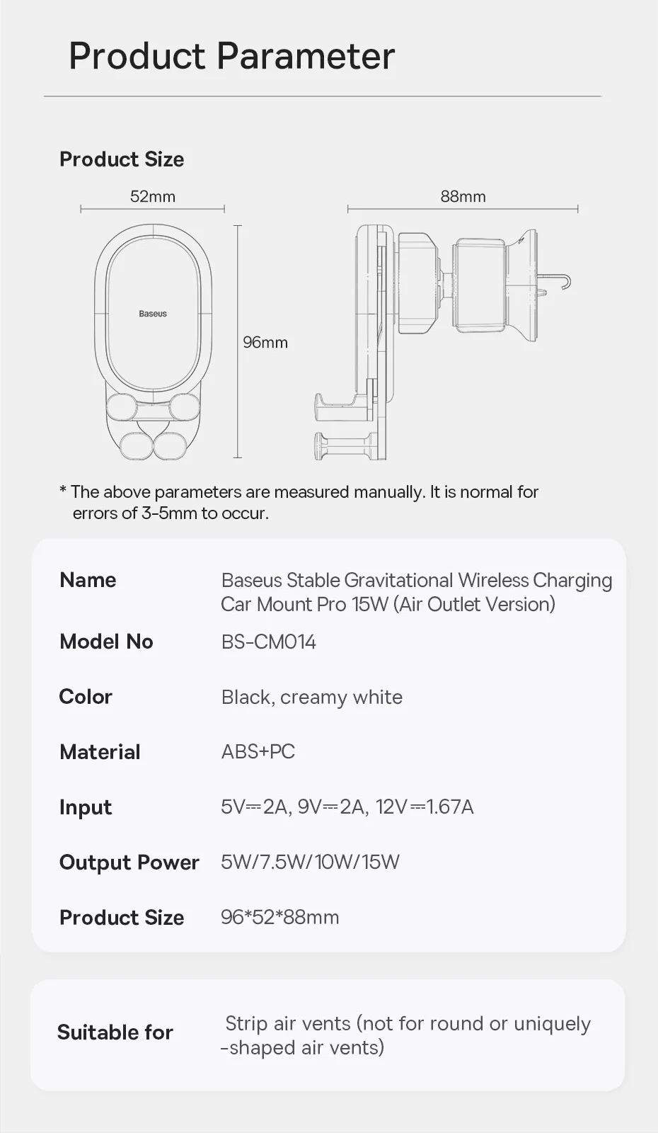 Suporte para celular com carregamento sem fio 15W (montagem na saída de ar):