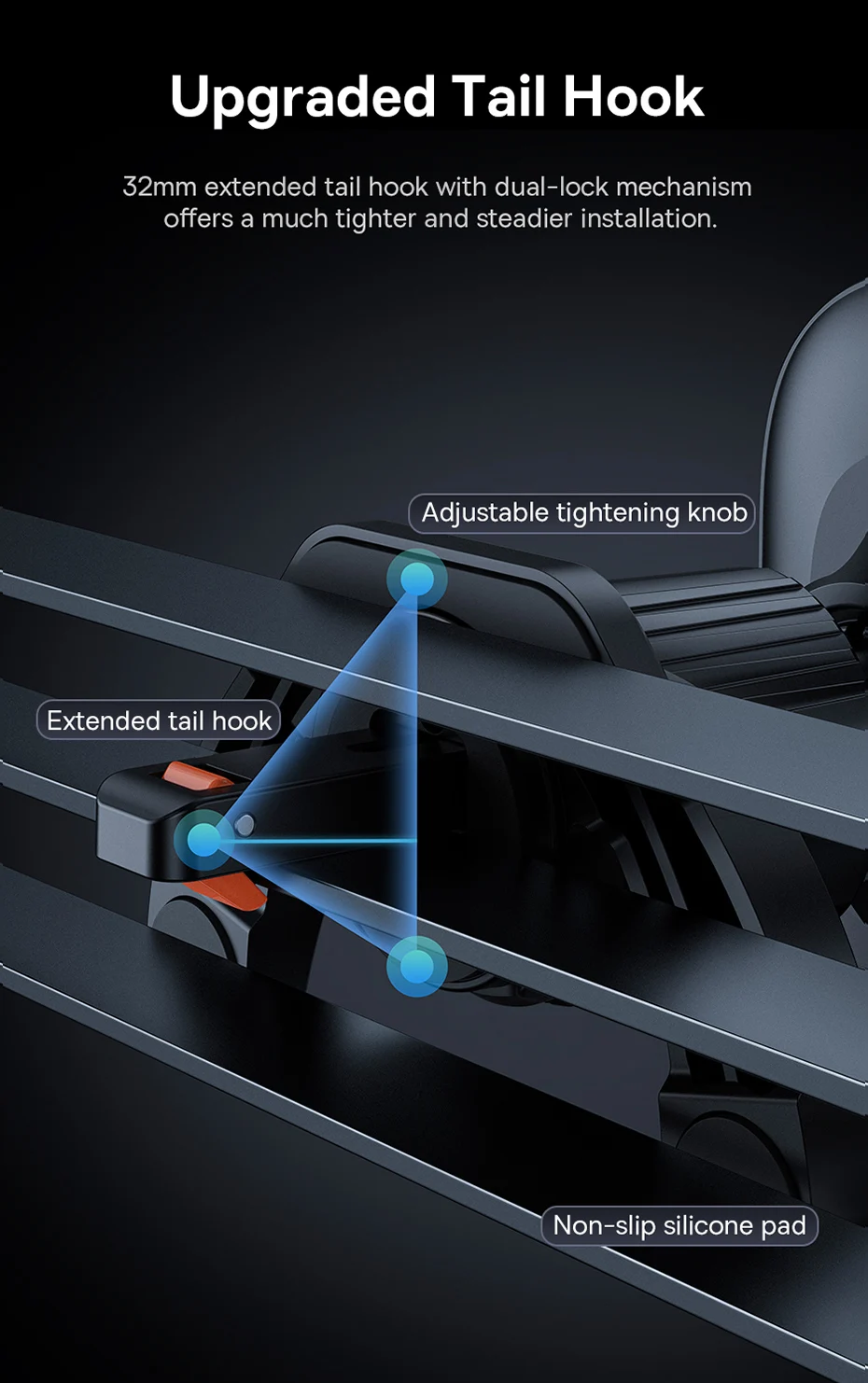 Gancho traseiro atualizado: 32 milímetros estendidos com Dual-Lock Mecanismo: